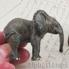 I painted the tiniest of people (also back in stock!) to create a wee trapeze artist and a ringmaster. I used the thinnest of brushes and the strongest of magnifying glasses to paint these performers. The trapeze artist is perched on her swing, which is actually a thin piece of wire, bent to shape. She’s attached to her perch with a little white glue. The baby elephant’s blanket is a piece of ribbon, cut to size and glued on.