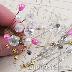 The tiny side table is made by gluing a flat round wooden bead atop a wooden finial. On top there are Tiny Thread Spools and a snip from the Mini Button Cards Half Sheet.