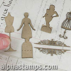 Lots of details inside an altered tin (using the A Tiny French Dress Shop Collage Sheet, one of the Altoids Tin Facades, and chipboard paper dolls AND dress forms from the TWO back-in-stock sets shown below).