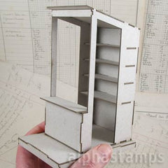 I added two of the 1:12 Shelves on the right wall of the 7×7 Corner Room Box, and framed a few sweet bunny prints using the Mini Frames Set and images cut from the Peter Rabbit and Bigger Bunnies collage sheets.