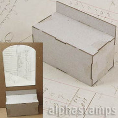I used a Small Trinket Shelf Stand to display the finished baskets. It comes with a drawer that fits at the bottom. I chose to leave it out in order to give myself more room to display everything. Before assembling it, I used the rear wall as a template for the paper on the top shelf.
