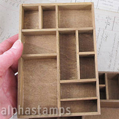 Next up: Here’s an art idea from the back-in-stock Mini Wooden Printer’s Type Tray Shadowbox: