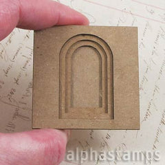 Eek! So cute! Like the larger versions of this book, this 2″ x 2″ size includes a solid back cover plus extra pages with arch window cut-outs in descending size.