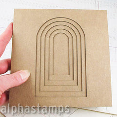 Kristin made a traditionally-bound book using the 6×6 Arch Tunnel Book (and the Wrought Iron Window Grate, which was designed to fit in one of the book’s arches).